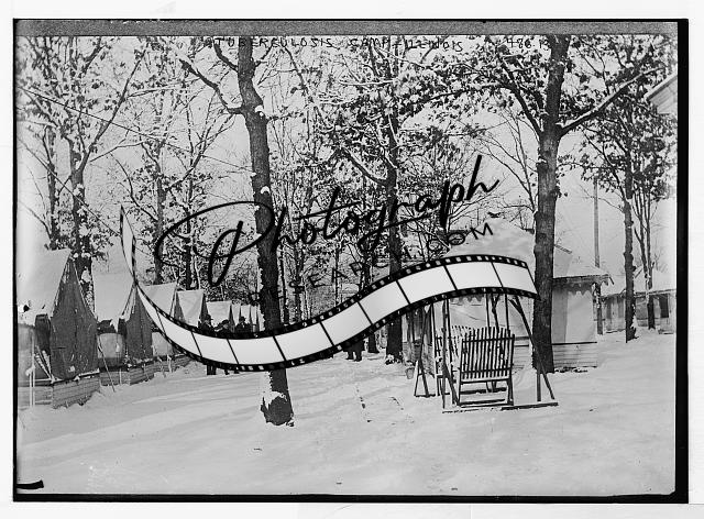 Cabins,tents at Tuberculosis camp,Illinois,IL,snow