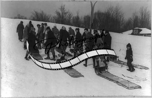 Return trip,Toboggans,sleds,winter,sports,Buck Hill Falls,Pennsylvania,PA,1943