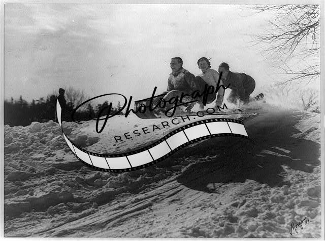 Off for,thrilling sky ride,toboggans,sled,Buck Hill Falls,Pennsylvania,PA,1943