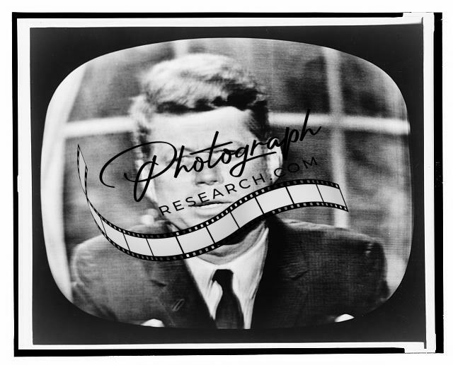 John F. Kennedy, on television, head-and-shoulders portrait, facing front, addressing the nation