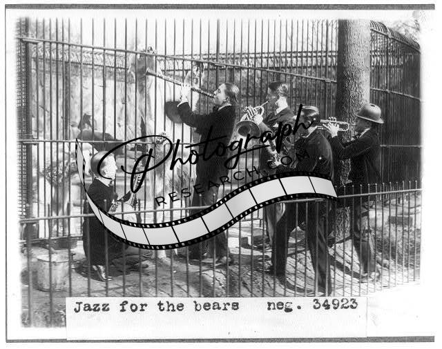 Jazz,men,musical instruments,polar bears in cage,National Zoo,Washington,DC