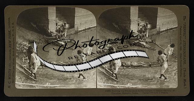 Bathing Hindu dead in the Ganges to insure the soul of Paradise,Benares,India