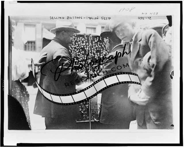 Italian Festa,man selling buttons,festival,Little Italy,New York City,NYC,1908