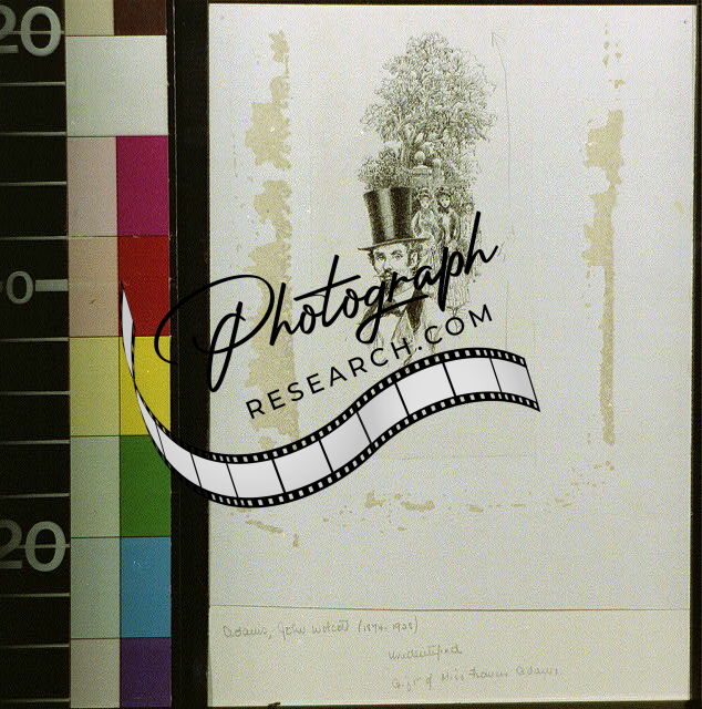 Head,shoulders of man in top hat with three girls behind him,John Wolcott Adams