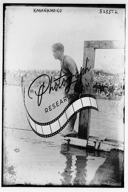 Duke Kahanamoku,Hawaiian competition swimmer,bathing suits,water,jumping,crowds
