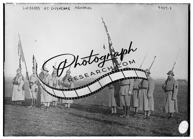 Lufberry at Guynemer Memorial,men with flags,Military,Bain News Service