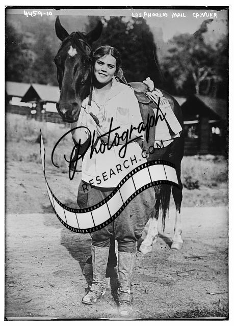 Los Angeles woman mail carrier,California,horse,Women Employment,Bain News