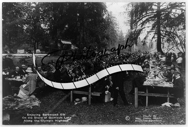 Enjoying Barbequed Elk,Shore,Quiniault Lake,Olympic Highway,Washington,WA,1915