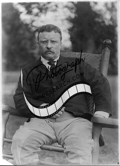 Theodore Roosevelt,President,Teddy,rocking chair,outdoors,trees,c1906