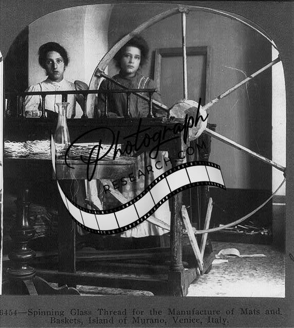 Spinning Glass Thread,Island of Murano,Venice,Italy,c1906,Women,Spinning Wheel