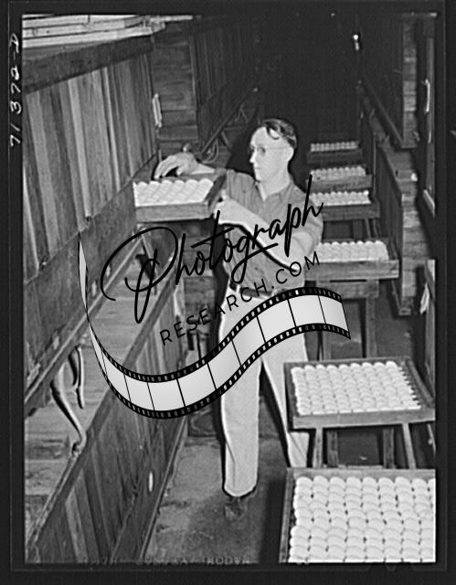 Title: Petaluma, Sonoma County, California. Closing crates of eggs in packing plant