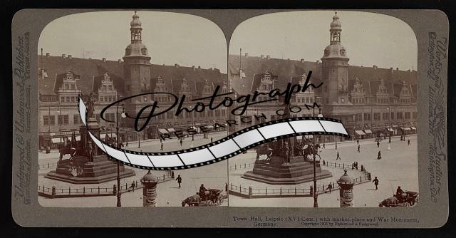 Town Hall,Leipsic (XVI Cent.) with market place,war monument,Germany