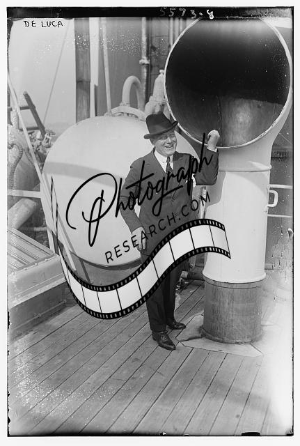 De Luca,ship passengers,boats,decks,smokestacks,men,suits,Bain News Service