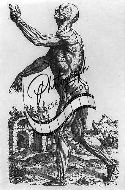 Photo,Full figure of male with numbered parts of anatomy,Andre Vesale