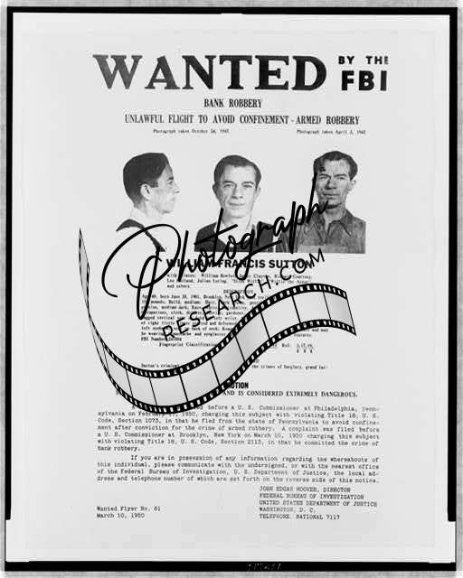 William Francis Sutton,American Bank Robber,FBI Wanted Photo,1950,Unlawful