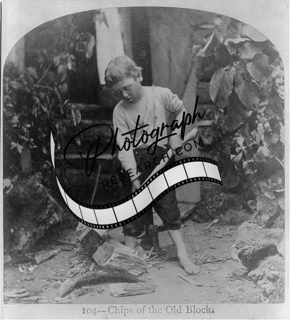Chips of the old block,Small Boy Chipping with Ax,Children,c1876