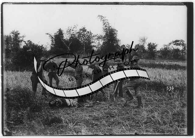Philippine insurrection: Red Cross,hospital corps in field,c1899,wounded soldier