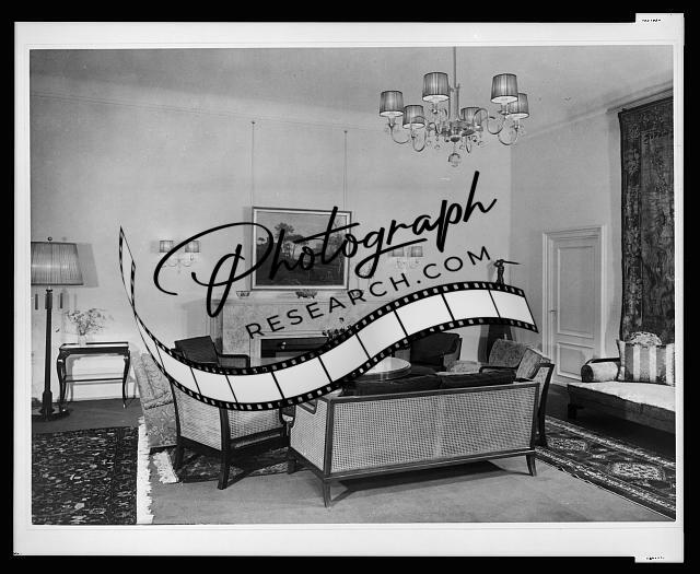 [Leipziger Platz 11a after rennovation] Furnishings, including large painting and antlers on the walls, at Göring's Berlin residence.
