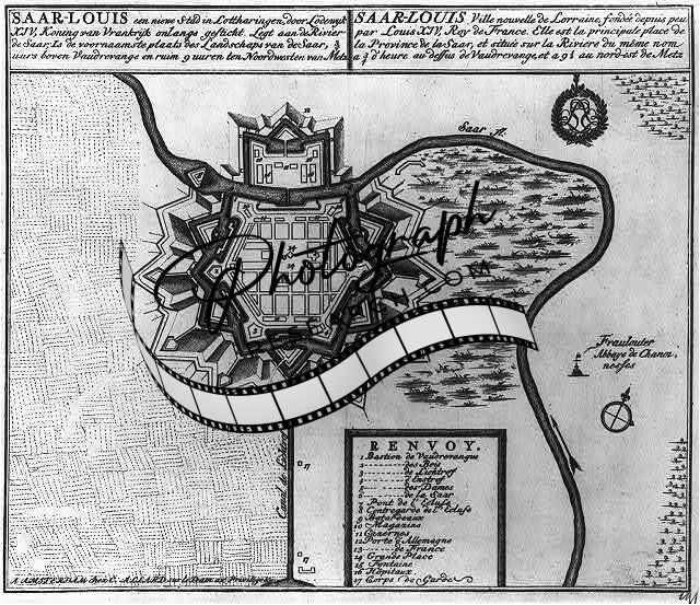 Saar-Louis,Map of French fortress city on Saar River,1729,France