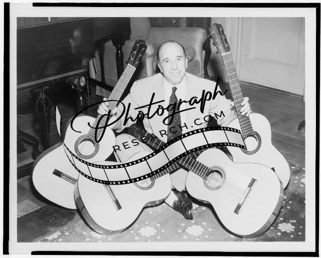 Carlos Montoya,on floor,with four guitars,1903-1993,prominent Flamenco Guitarist