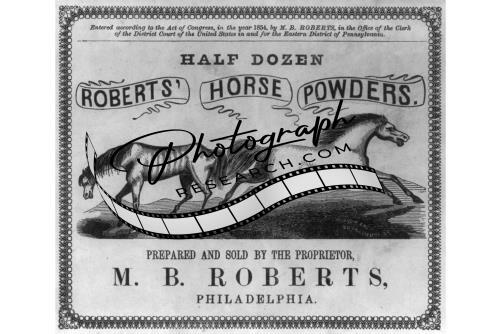 Photo of Advertisement Label,Roberts' Horse Powders,c1854,Patent Medicine
