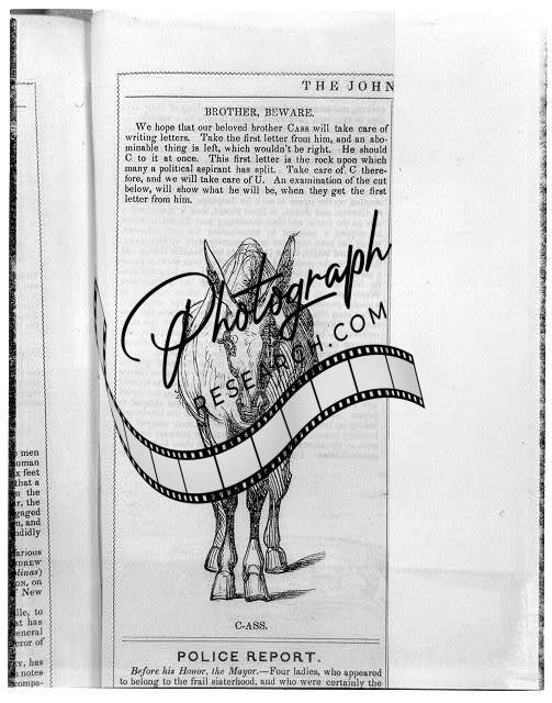 Photo,'Brother,Beware. C-Ass',Caricature of Lewis Cass as jackass,1848