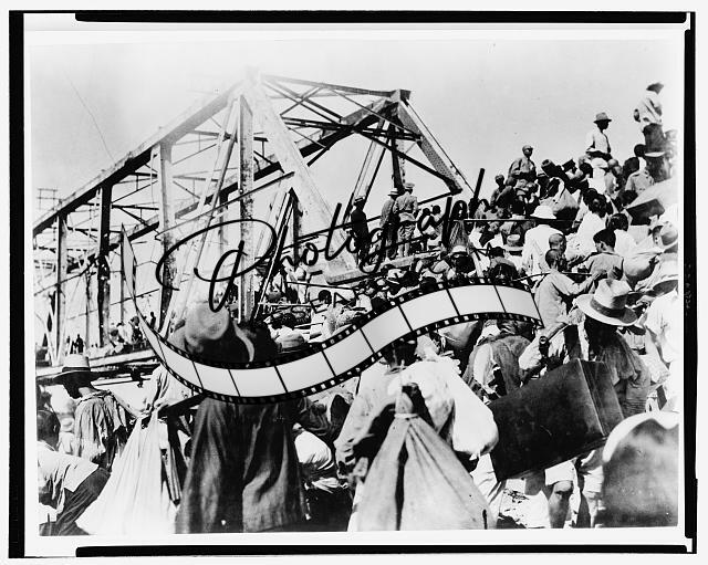 'China at War' series,1937-1945: mass of refugees crossing bridge (II-104)