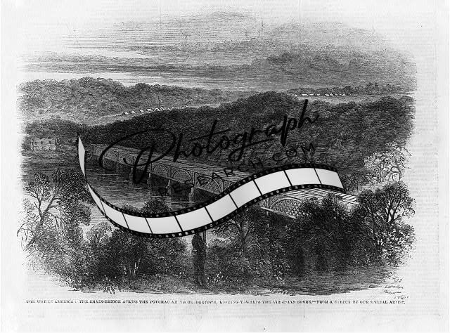 War in America,Chain Bridge across Potomac River,Georgetown,Soldier,1861