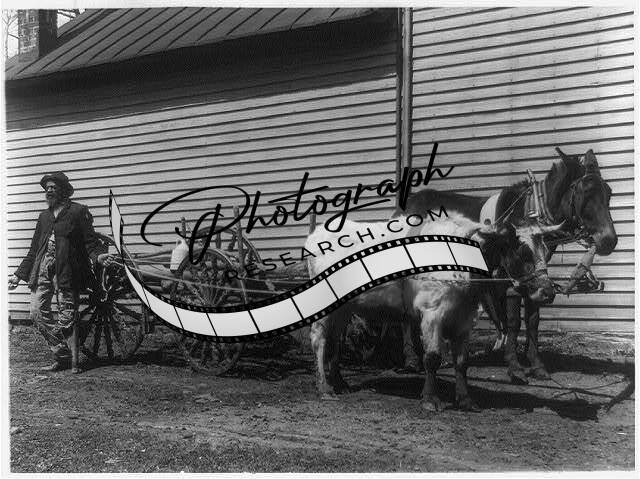African American man,steer,mule,pulling wagon,c1908,Amputee,Employment