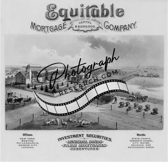 Photo of Advertisement,Equitable Mortgage Company,c1888,Farm House,Barn,Pasture