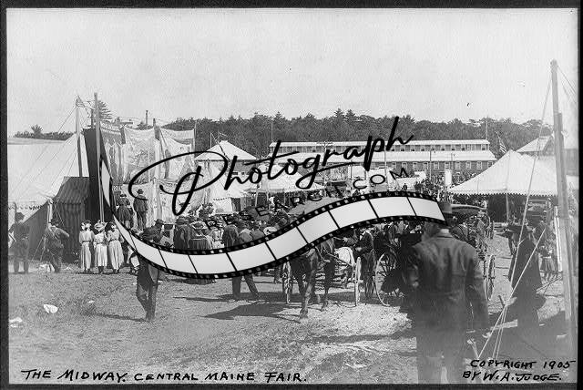 The Midway,Central Maine Fair,c1905,side show attractions,crowd,horses,umbrella