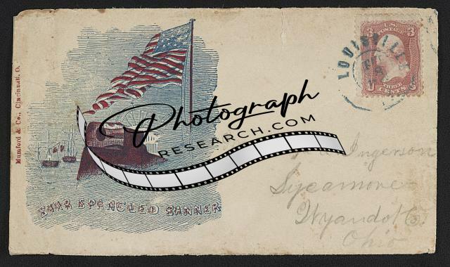 Photo of Civil War envelope,Columbia,American flag,laurel,cannon,Liberty & Union