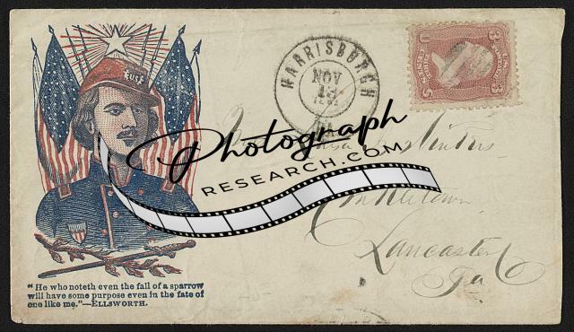 Photo:Civil War Envelope,Elmer Ellsworth,Loisa Winters,Lancaster,PA,Harrisburgh