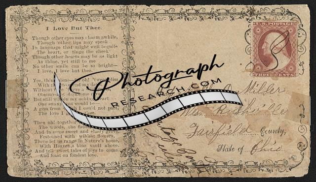 Photo of Civil War envelope,'I love but thee' in ornamental border,stamp,writing