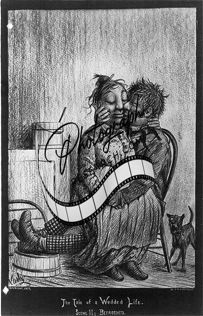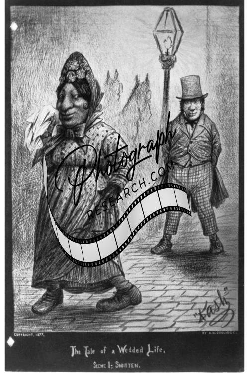 Caption card tracings: Cartoons, U.S. 1877; Marriage; Manners and customs; Saloons.