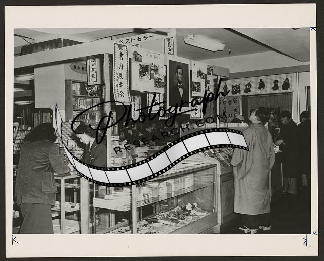 Tokyo department store,Japanese man,Abraham Lincoln,life,posters,shopping,1959