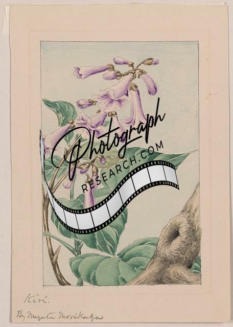 Photo of Kiri branch with flowers,leaves,by Megata Morikaga,Japan,1870,Paulowina