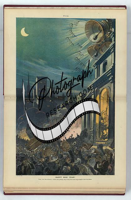 Happy new year!,Father Time,Puck,1910,noisemakers,drums,Partisanship,Keppler