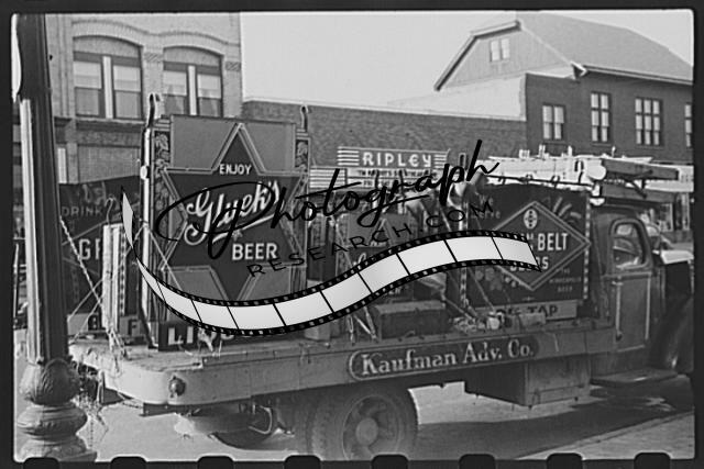 Photo of Erecting neon sign,Fargo,North Dakota,ND,Farm Security Admin,FSA