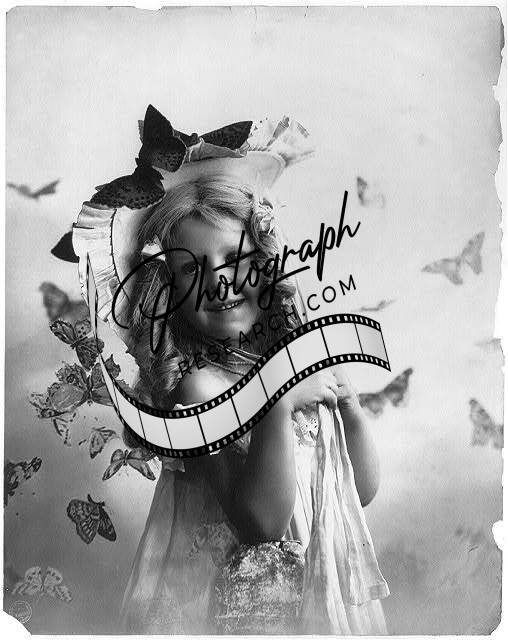 Young girl posed,with butterflies,Hair Curls,c1901,Child