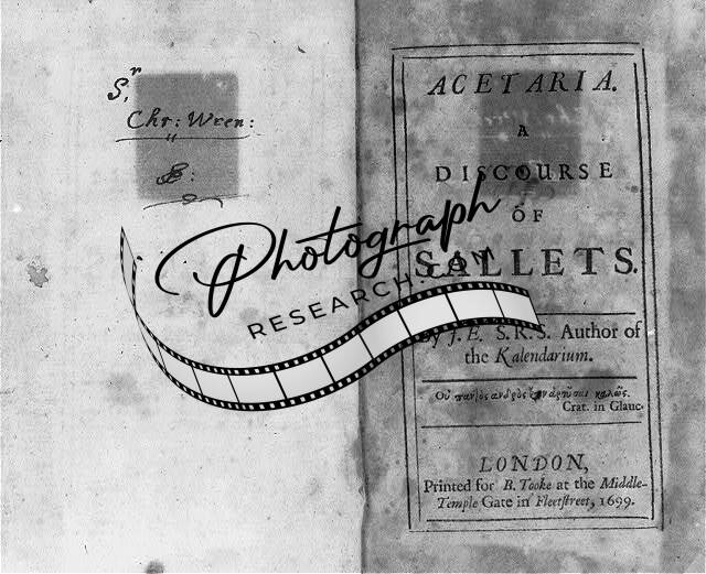 Photo of Title Page,John Evelyn,Sir Christopher Wren,1699,Cookery,Sallets