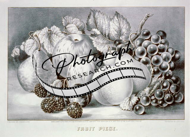 Photo of Fruit Piece,c1870,Currier & Ives,Raspberries,grapes,pear,peach,apple