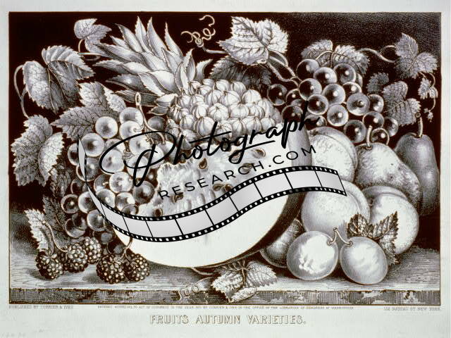 Photo of Fruits Autumn Varieties,c1871,Currier & Ives,watermelon,raspberry,grape