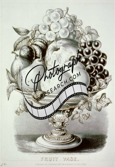 Photo of Fruit vase,c1847,Currier & Ives,grapes,peaches,cherries,flowers