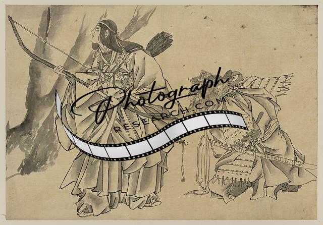 Warrior archer,Photo of Ukiyo-e,Japan,Padded Armor,Unstrung Bow,1800-1870