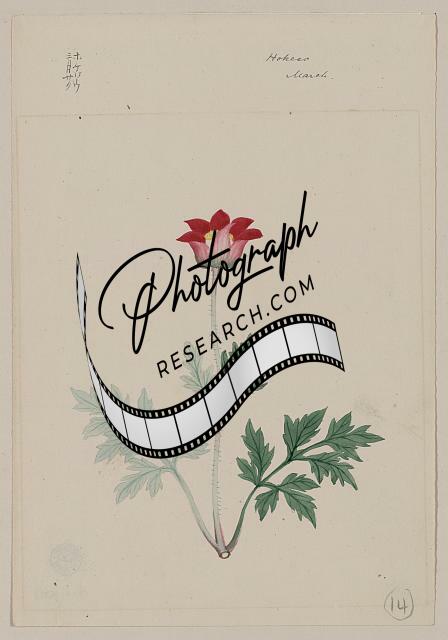 Photo of Hokeso - March,Flowers,Leaves,Japan,Red Blossom,1870s
