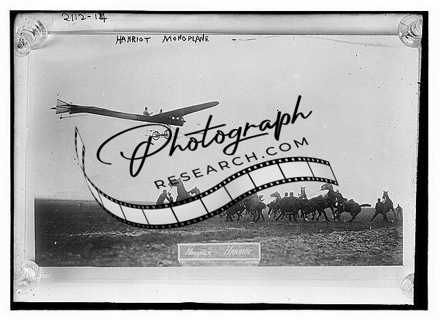 Hanriot monoplane,Airplane,Aeroplanes Hanriot et Cie,in flight,horses on ground
