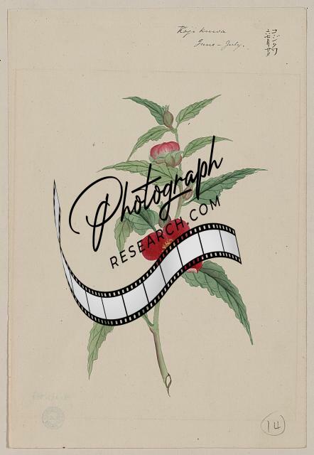 Photo of Koji kuwa - June-July,Red Blossoms,Flower,Primrose,1870s,Japan,Leaves