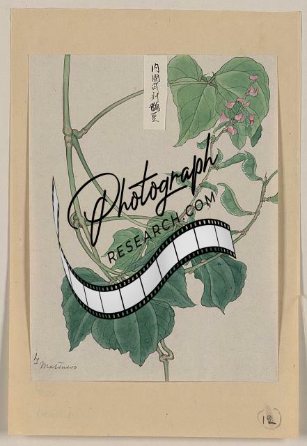 Mame,pea or bean plant showing vine,leaves,pods,blossoms / Matsuwo,1878,Japan