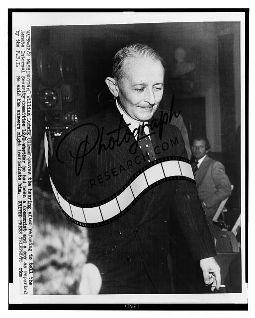 William Ludwig Ullman, half-length portrait, turned right, leaving hearing of the Senate Internal Security Committee in Washington